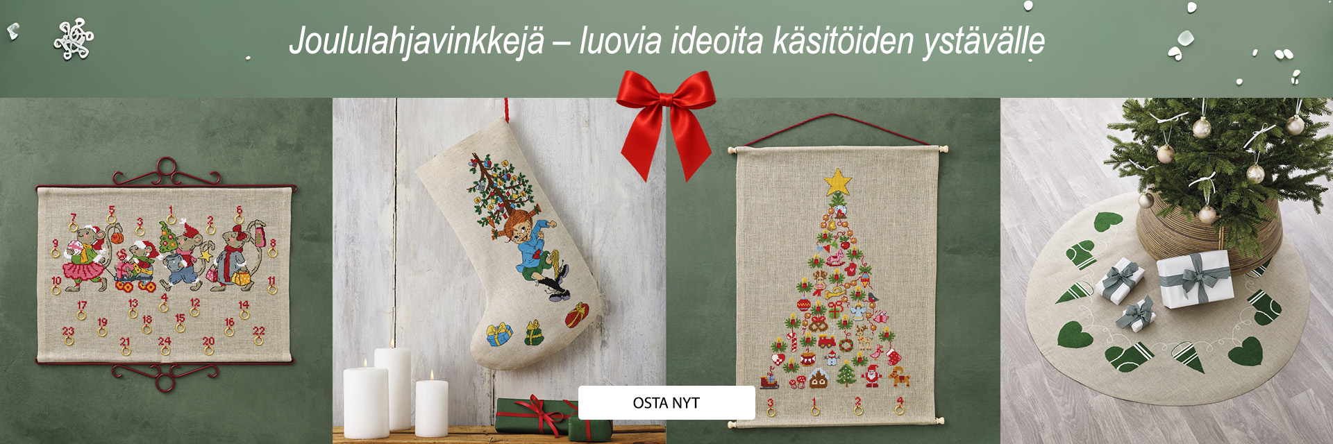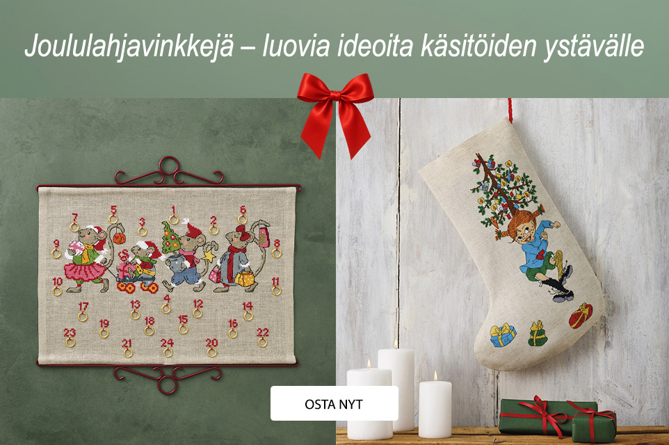 Tervetuloa sivuillemme – Ateljé Margarethalla on suurin valikoima kirjontatöitä! Tarjoamme laajan valikoiman eri tarkoituksiin sopivia kirjontatöitä tunnetuilta valmistajilta kuten Cewec, Dimensions, Duftin, Svarta Fåret, Permin ym. Kirjaile liinoja, kaitaliinoja, tyynynpäällisiä, tauluja, kortteja ym. Meiltä löydät runsaasti aiheita esimerkiksi kaste- ja hääjuhlia varten, eläin- ja luontoaiheita sekä pääsiäis- ja jouluaiheita.