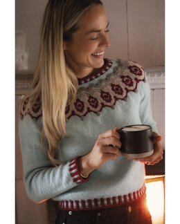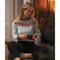 Klassinen jouluneulepusero, jossa on pohjoismainen kuviointi ja pehmeät, talviset värit. Vaaleansininen pohja korostuu k...