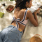 Naisellinen ja kesäinen pusero, jossa on syvä V-pääntie ja koristeelliset kontrastireunat. Yksinkertainen malli pääsee oikeuksiinsa selkeiden raitojen ansiosta – ne kulkevat pääntietä ja helmaa pitkin ja tuovat ilmeeseen sporttisuutta, mutta samalla pehmeyttä.