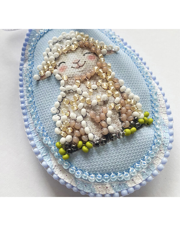 Luo pehmeä ja tunnelmallinen pääsiäiskoristelu tällä helmikirjontapaketilla, jonka pääsiäismunia koristaa lammas ja pieni tipu.