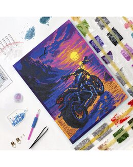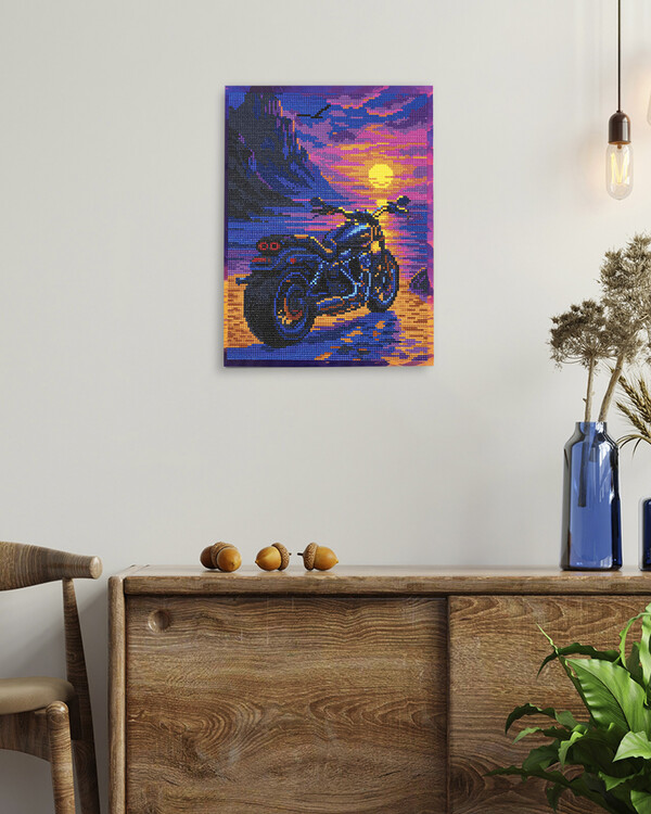 Draamaattinen diamond painting -aihe, joka rakentuu esiin kivi kiveltä.