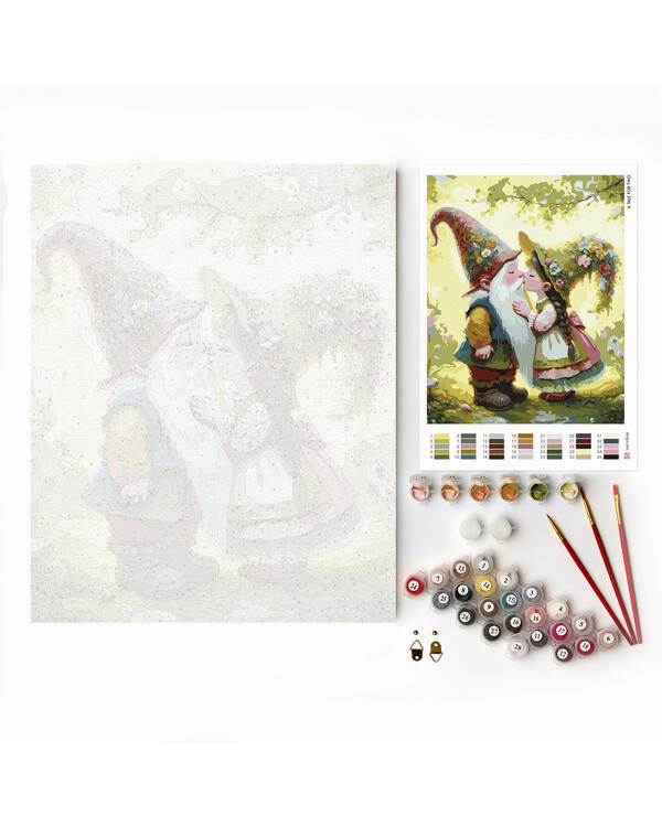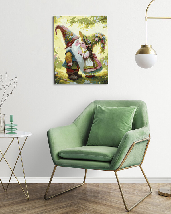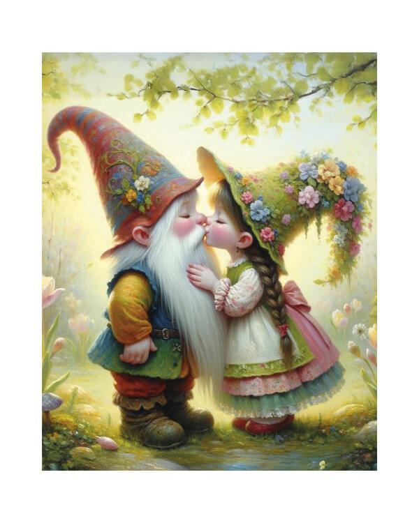 Suloinen aihe, jossa on kaksi romanttista tonttua kukkivassa puutarhassa. Leikkisä ja hurmaava taulu sopii täydellisesti...