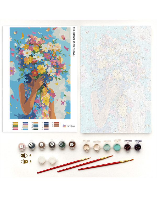 Malli on looginen, ja sitä on helppo seurata. Yhdistät vain värinumeron samaan numeroon, joka on maalauskankaalla. Tässä pakkauksessa on kaikki, mitä tarvitset oman mestariteoksesi luomiseen.