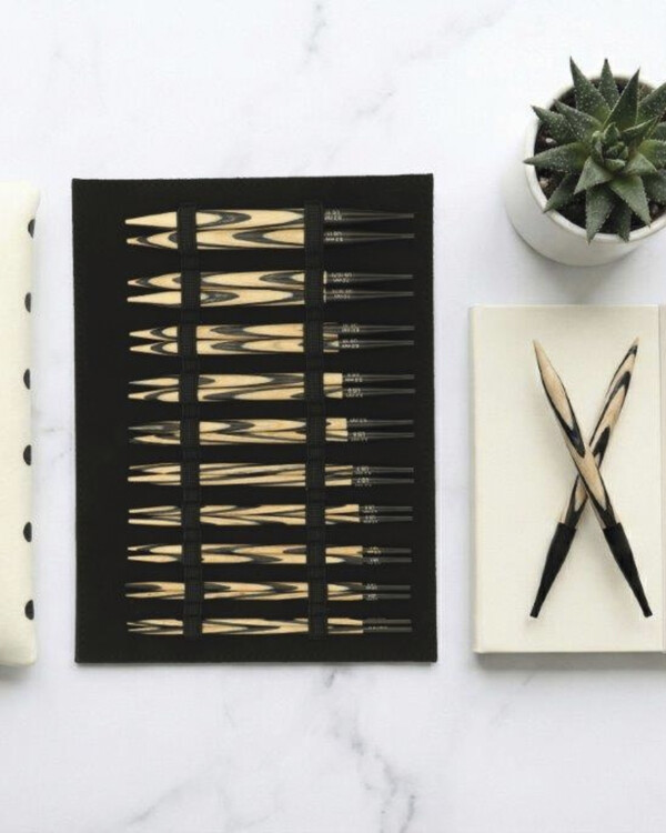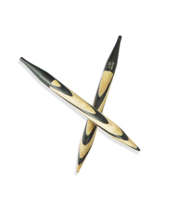 Puikot on valmistettu ylellisestä laminoidusta koivusta, ja niissä on musta-luonnonvärinen aaltoileva chevron-kuvio, joka tekee niistä todella tyylikkäät ja samalla hyvin erottuvat erivärisiä lankoja vasten.