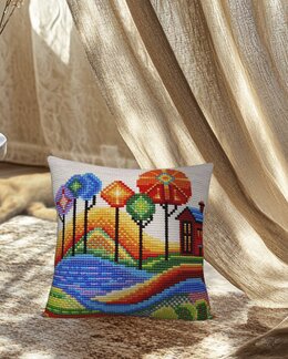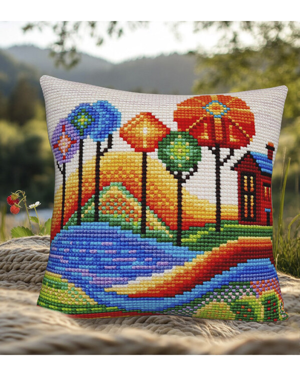 Pakkauksessa on kaikki tarvittava, jotta voit itse kirjailla kauniin tyynynpäällisen – tämä hauska käsityö sopii sekä aloittelijoille että kokeneille tekijöille.