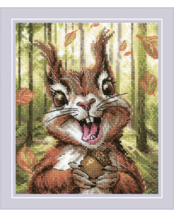 Kirjo tämä kaunis ja hauska taulu, jossa orava nauttii pähkinästään – Rioliksen ihanasta mallistosta!