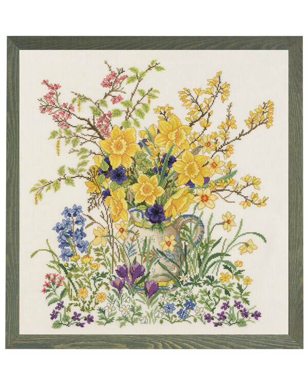 Tämän kirjontapakkauksen avulla voit luoda säteilevän kauniin taulun, jossa loistavat keltaiset narsissit muodostavat eläväisen kimpun – symbolina valolle, toivolle ja uudelle alulle. Täydellinen persoonalliseksi seinäkoristeeksi tai itse tehdyksi lahjaksi.