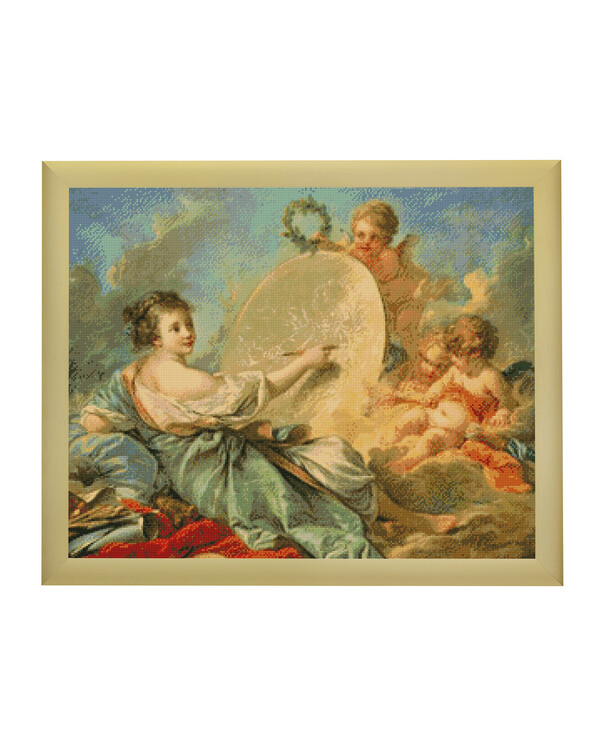 Kirjotaan muliinilangalla risti- ja jälkipistointumma beigen aidakankaan ruutuja laskien, 5,4 ruutua/cm. Kuvion mitat n....