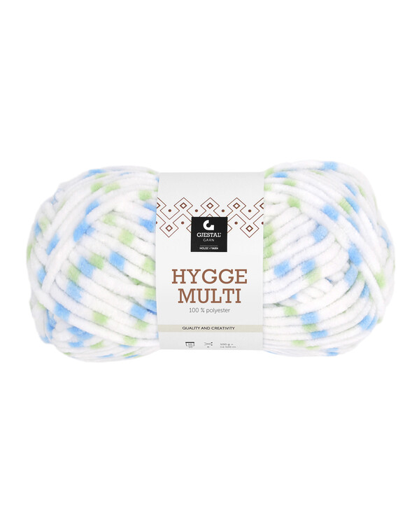 Hygge Multi on erityisen pehmeä ja paksu chenillelanka, joka on valmistettu 100 % polyesteristä. Langassa on kaunis monivärinen sävytehoste.