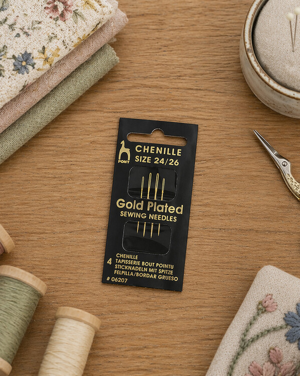 Kultasilmäneulat koko 24/26, 4 kpl – Pony Chenille-kirjontaneulat